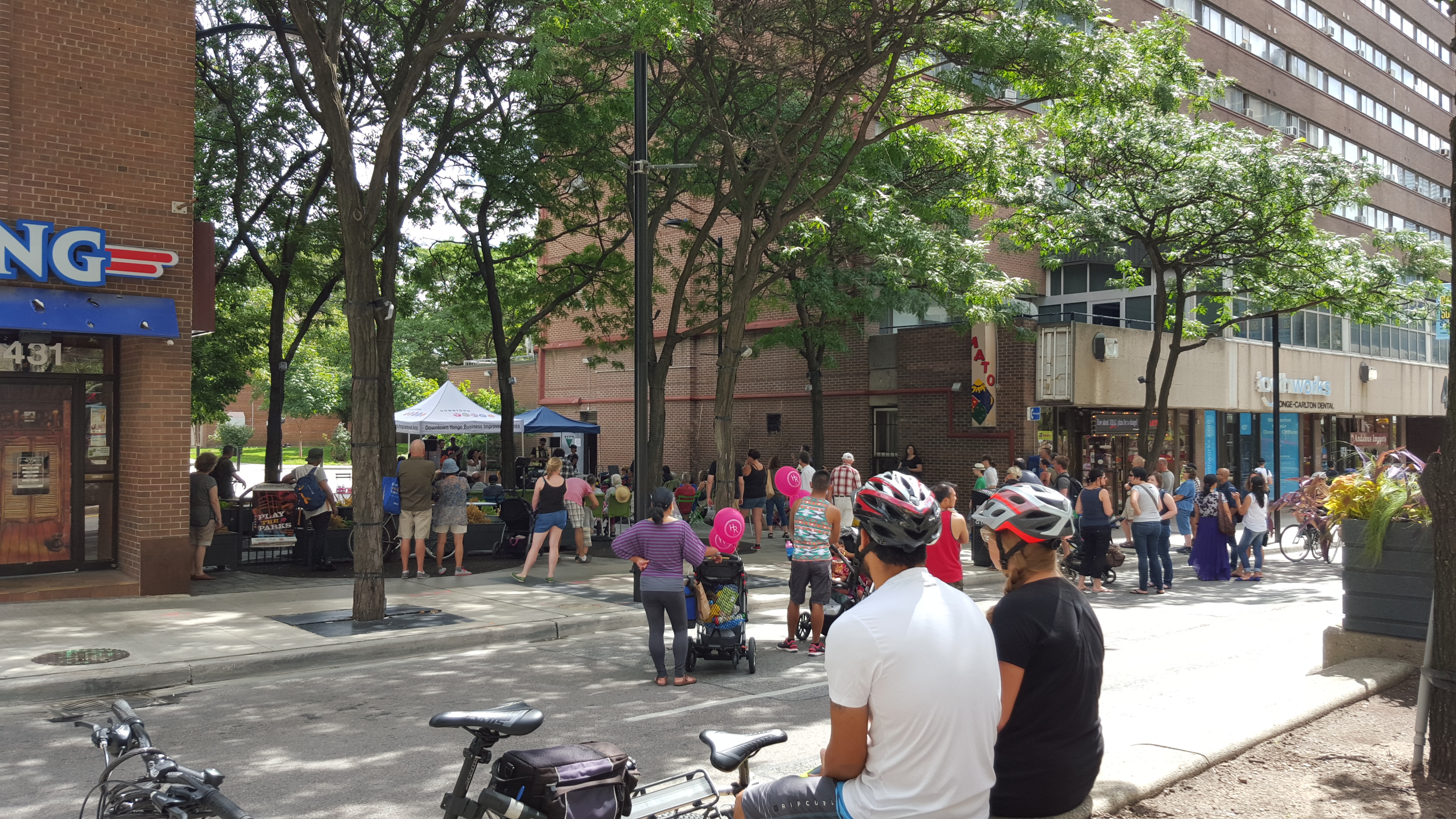 After the delicious brunch I decided to go back to the tent at Yonge and Queen to have my bike checked out. It was a little past noon and I guess people started to realize what was going on. The streets were getting much busier. Across from Hey Lucy, a bike obstacle course was set up and other events were running as I biked down Bloor. Along Yonge, there were many other tents and events for kids and adults alike.