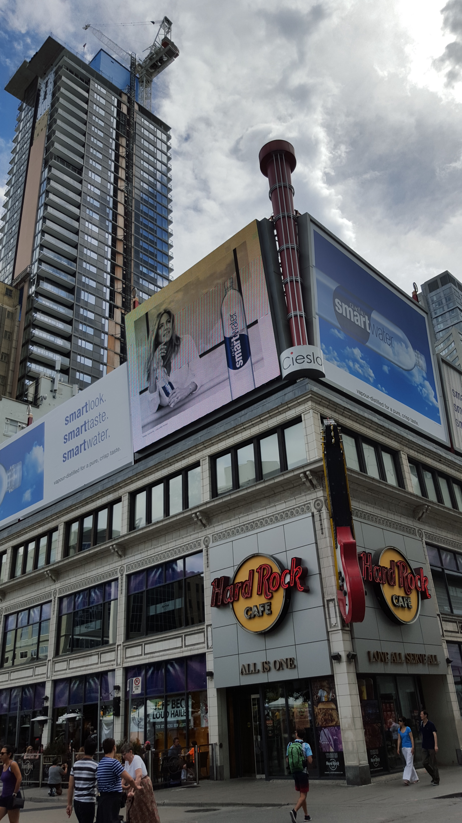 Yonge and Bloor, looking East. The office tower on the left, along with the hotel/condo are being dwarfed by the shadow of One Bloor (barely seen on the right.)