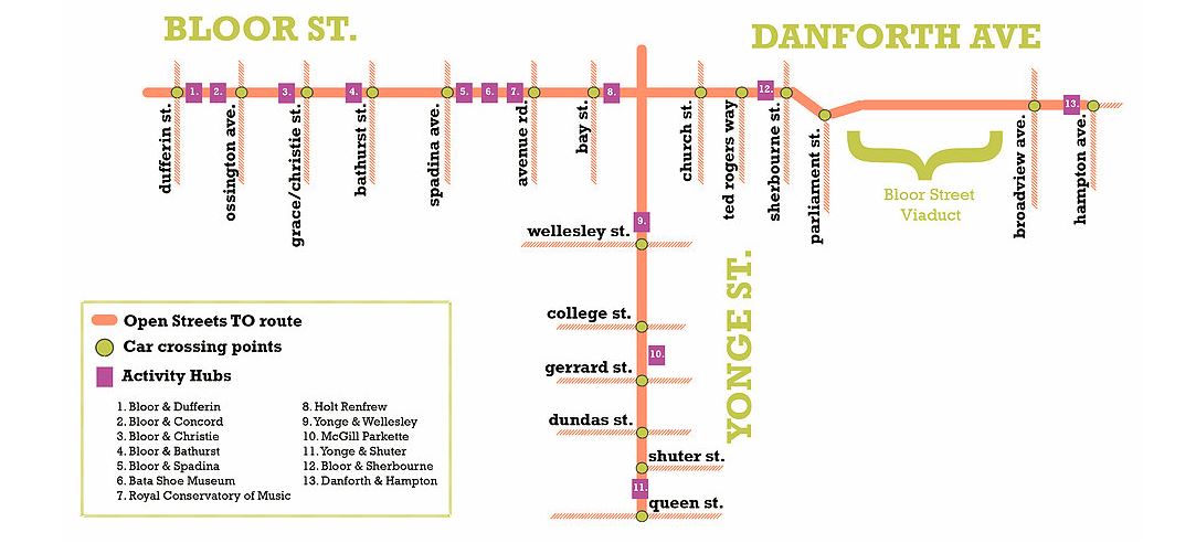 Map of Open Streets Toronto – September 18, 2016, 10:00 AM – 2:00 PM. (Map courtesy, Open Streets Toronto)